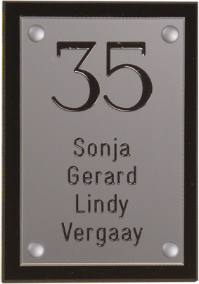 Perspex is een stevige kunststofsoort (3 mm dikte), welke uitstekend geschikt is voor gebruik in en rondom uw woning. De tekst wordt in alle perspex-naamborden gegraveerd, waardoor uw naam niet weg kan slijten of vervagen. De transparante perspex naamborden worden aan de achterzijde ingegraveerd (waardoor de voorkant glad blijft) en de gekleurde perspex naamborden worden aan de voorzijde ingegraveerd. Tot slot: de perspex-naamborden zijn standaard voorzien van schroefgaten (tenzij anders vermeld) en worden geleverd met afstandbusjes en afdekdopjes waardoor u het naambord eenvoudig op een korte afstand van de muur kunt monteren.