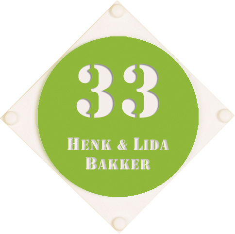 Sjabloonstyle is een unieke serie van het materiaal perspex. Perspex is een stevige kunststofsoort (3 mm dikte), welke uitstekend geschikt is voor gebruik in en rondom uw woning. In de serie sjabloonstyle worden twee kleuren perspex op korte afstand van elkaar gemonteerd. De tekst wordt in de serie sjabloonstyle door de bovenste plaat (de tekstplaat) heen gegraveerd, waardoor de onderliggende plaatkleur (de achterplaat) verschijnt. Uw naam kan hierdoor niet weg slijten of vervagen. Tot slot: de naamborden uit de serie sjabloonstyle zijn standaard voorzien van schroefgaten (tenzij anders vermeld) en worden geleverd met afstandbusjes en afdekdopjes waardoor u het naambord eenvoudig op een korte afstand van de muur kunt monteren. Sjabloonstyle: een unieke, luxe kunststofsoort die tegen een stootje kan!